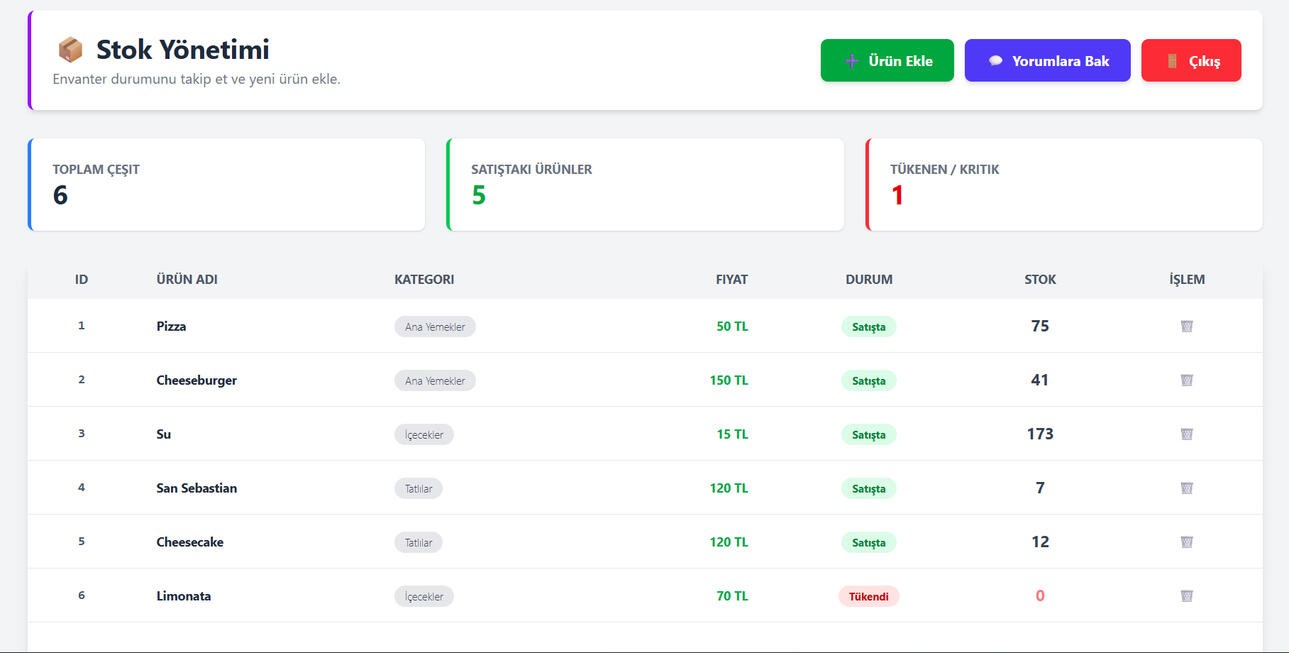 Müşterileriniz için tasarlanmış modern arayüz ile sipariş vermek artık çok daha kolay. Dijital menü üzerinden anlık seçim yapma ve sipariş durumunu takip etme imkanı.